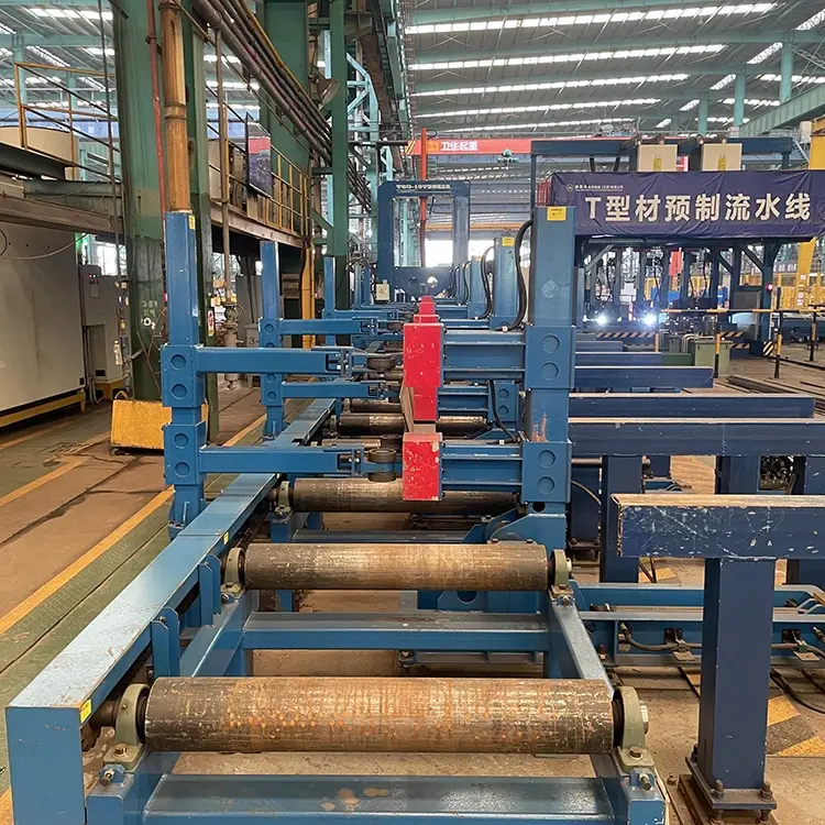Ang karaniwang mga linya ng welding ng ZHJ3-in 1 h beam ay binubuo ng isang talahanayan ng roller ng input, pangunahing istasyon ng hinang at straightening, outputroller table.