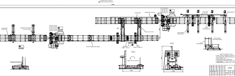Batay sa itaas, maaari kaming magdagdag ng isang hanay ng 90 degrees beam flipper sa output roller table para maibagsak ang welded beam sa pahalang na posisyon.