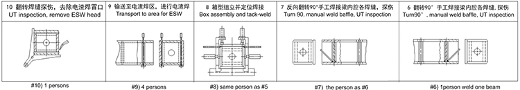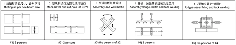 Ang sumusunod ay ang tsart ng daloy ng produksyon para sa paggawa mula sa mga plato hanggang sa h beam at pangwakas na inspeksyon.