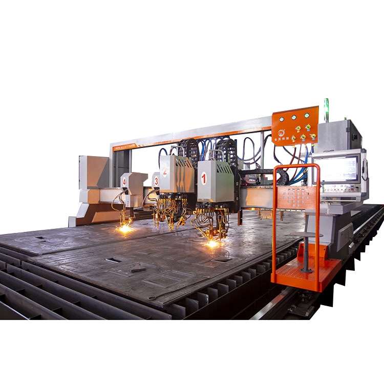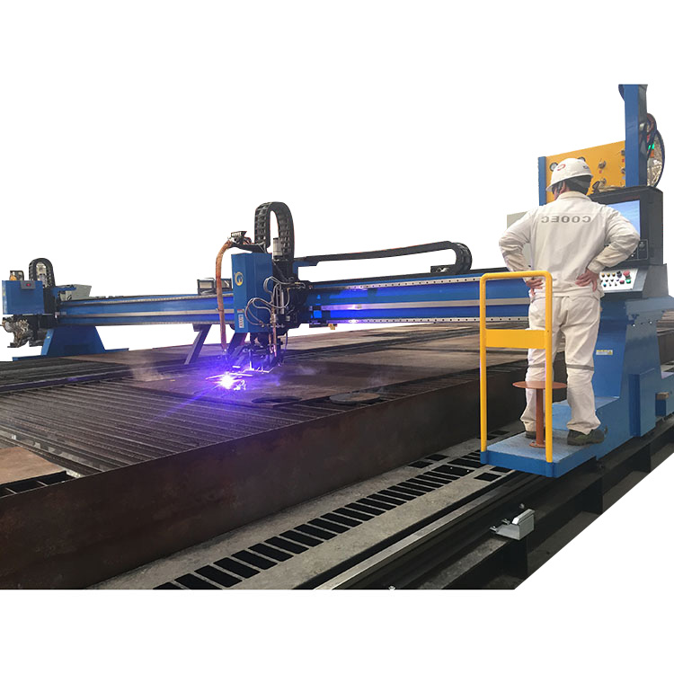 Ang CNCMga Plamsa At Oxyfuel Cutting Machineay dual drive na may servo motors. Ang mga riles para sa portal na tumatakbo ay ginawa mula sa riles ng tren na may mataas na tigas, na tumpak na machining at grinding sa pamamagitan ng rail grinding machine upang matiyak ang katumpakan ng mga riles na mas mababa sa 0.02mm, kaya upang matiyak ang mataas na kalidad ng pagputol ng mga bahagi.