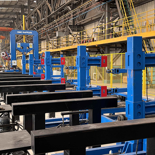 Sa pangunahing makina mayroong maraming set ng flange/panel at web clamping wheels upang matiyak ang katumpakan ng pagpoposisyon ng mga beam na kailangang i-assemble.